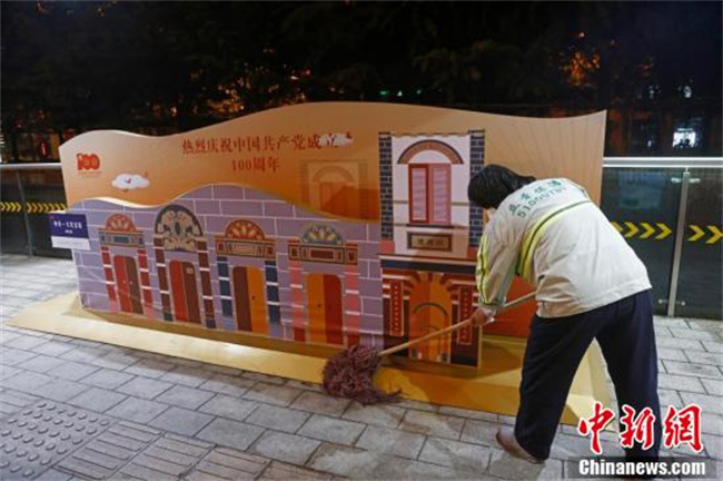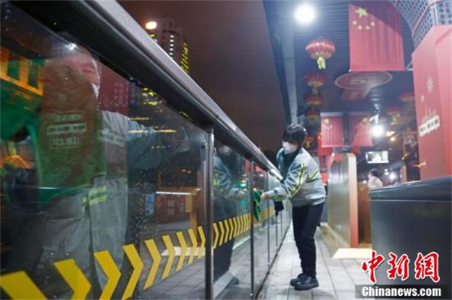 保洁人员正在对外滩站进行清洁。