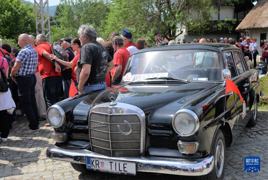 5月21日,在克罗地亚库姆罗韦茨,前南斯拉夫领导人铁托当年乘坐过的轿车停放在纪念铁托诞辰130周年活动现场。