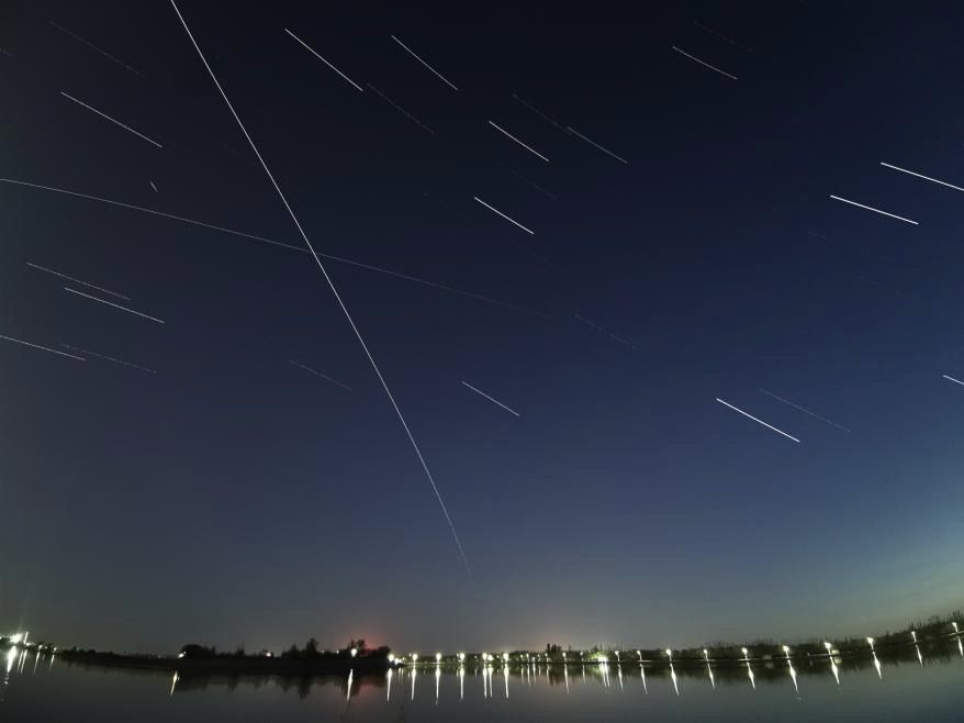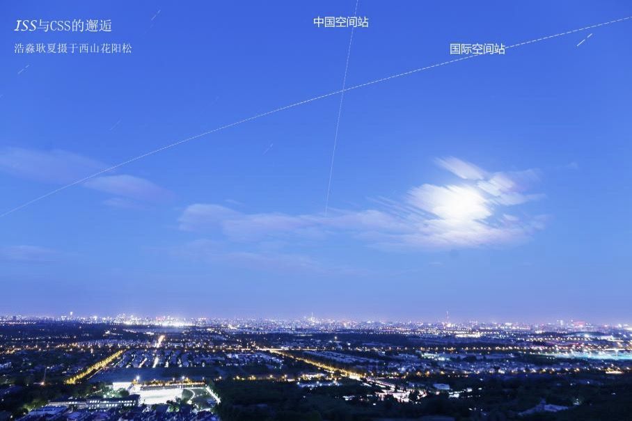 北京西山国家森林公园上空,中国空间站邂逅国际空间站。(网友浩淼之星耿夏 摄)