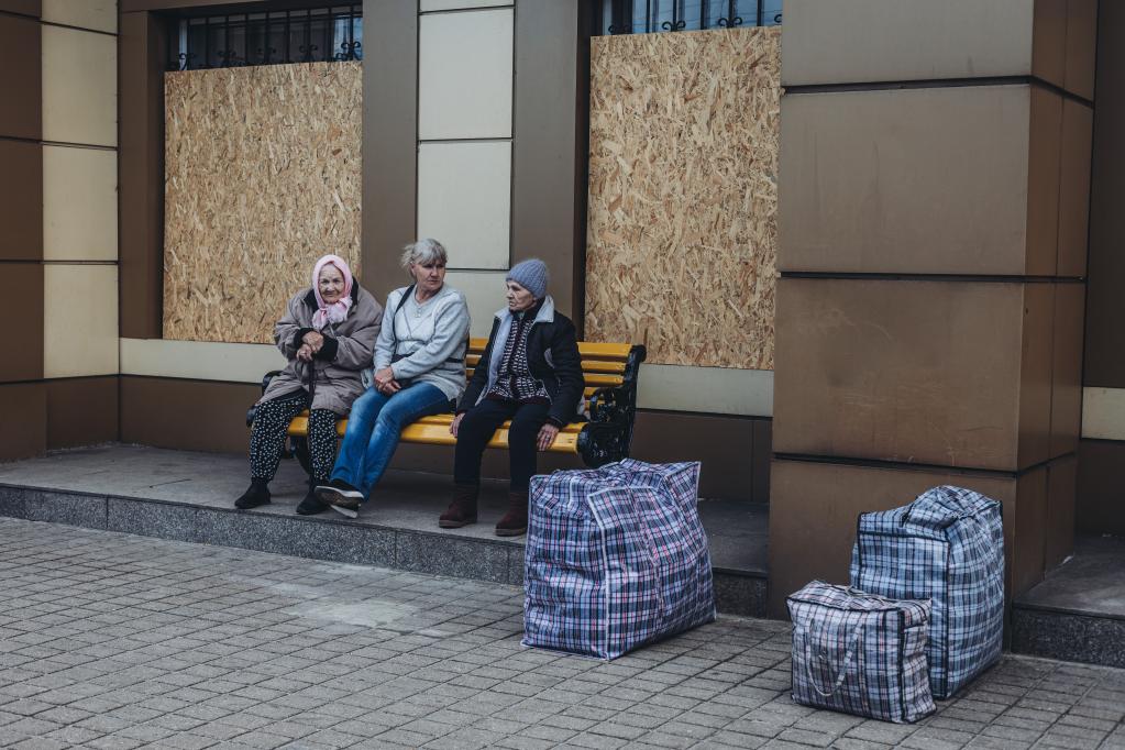 5月23日,在顿涅茨克的波克罗夫斯克,人们坐在长椅上。新华社发(迭戈·埃雷拉摄)