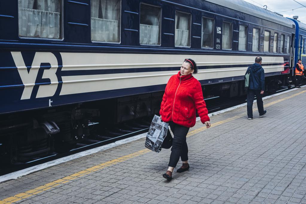 5月23日,在顿涅茨克的波克罗夫斯克,一名女子准备登上火车。新华社发(迭戈·埃雷拉摄)