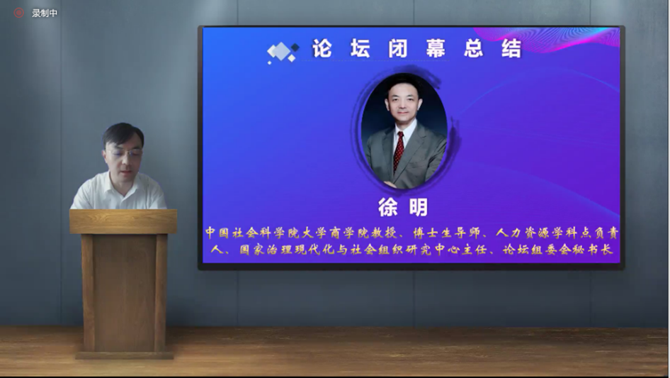 接下来,由中国社会科学院大学商学院人力资源学科点负责人徐明教授对本届论坛进行总结。他指出,本届论坛收获颇丰,八位专家作了关于人力资源管理最前沿理论与实践的主旨报告,九位优秀征文入选作者进行了成果展示与分享,并获得了专家的精彩点评。同时,四位专家在科研论文工作坊环节进行了精彩演讲。这些收获必将助力各位科研工作者,成为其探索未来科研之路的神兵利器。
