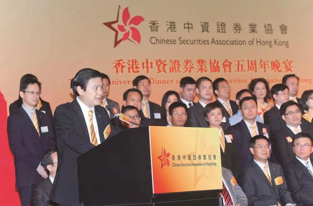 △2012年,时任香港中资证券业协会会长阎峰于协会成立五周年晚宴致辞。