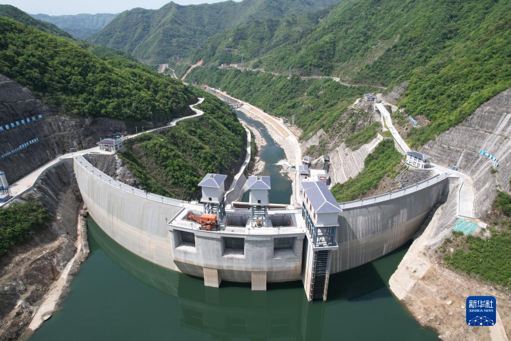 引汉济渭工程三河口水利枢纽工程(2022年4月19日摄,无人机照片)。新华社记者 邵瑞 摄