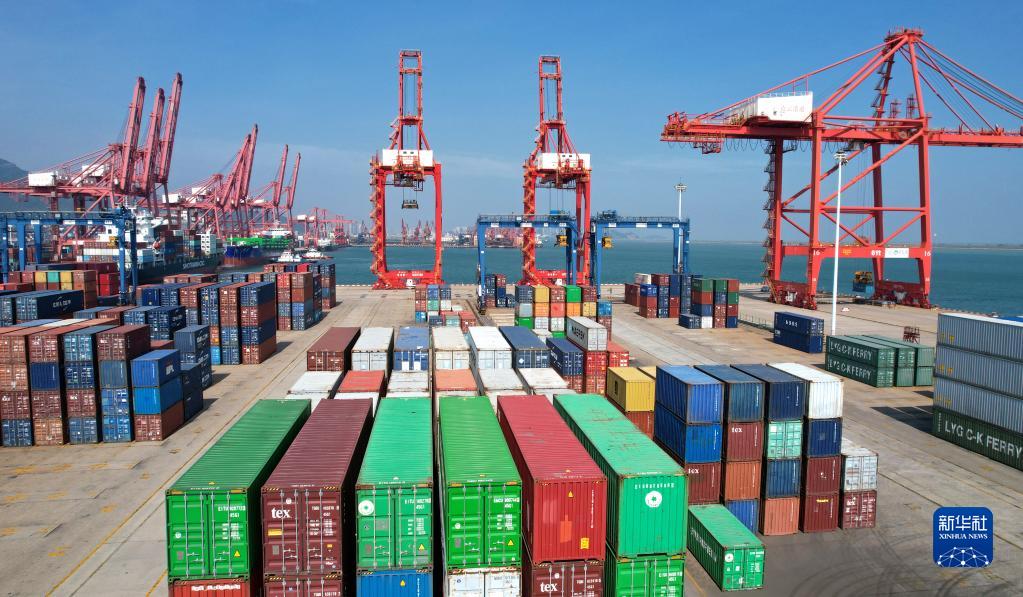 7月13日拍摄的江苏连云港港集装箱码头一角(无人机照片)。海关总署7月13日发布数据:今年上半年,我国外贸实现稳步增长,货物贸易进出口总值19.8万亿元,同比增长9.4%。其中6月当月,进出口同比增长14.3%,增速较5月加快4.8个百分点。新华社发(耿玉和摄)