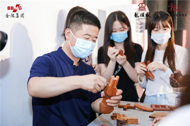 榫卯文化是我国传统家具文化的瑰宝,一榫一卯之间,一转一折之际,凝聚几千年家具文化精髓,尽显古人智慧。王文光师傅现场为北京第二外国语学院的留学生们展示榫卯结构,交流京作非遗文化。
