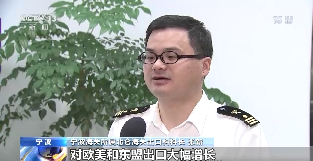 宁波海关所属北仑海关出口科科长 张新:(今年)宁波口岸对欧美和东盟出口大幅增长,为帮助这些国内货物顺利出口,我们采取“提前申报”“两步申报”等措施,目前宁波口岸的提前申报率已经从去年的69%提高到目前的93%以上。