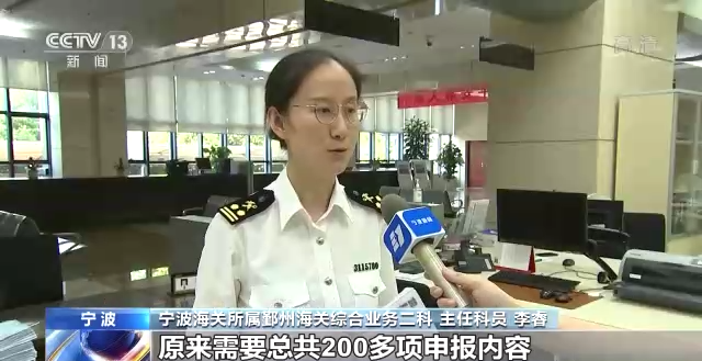 宁波海关所属鄞州海关综合业务二科 主任科员 李睿:农产品的进口申报,原来需要总共200多项申报内容,现在货物提离前仅需要简单申报商品编号商品名称等几项重要内容就可以了。