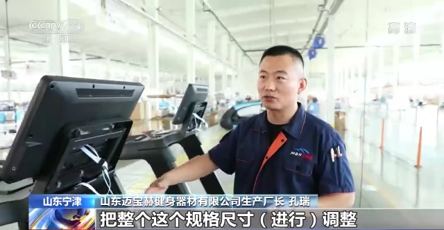 山东迈宝赫健身器材有限公司生产厂长 孔瑞:同时能够监测110伏和220伏的生产,通过对流水线的改造,把整个规格尺寸的调整,同时在这条线上随时可以自行切换,满足国内国外的生产。