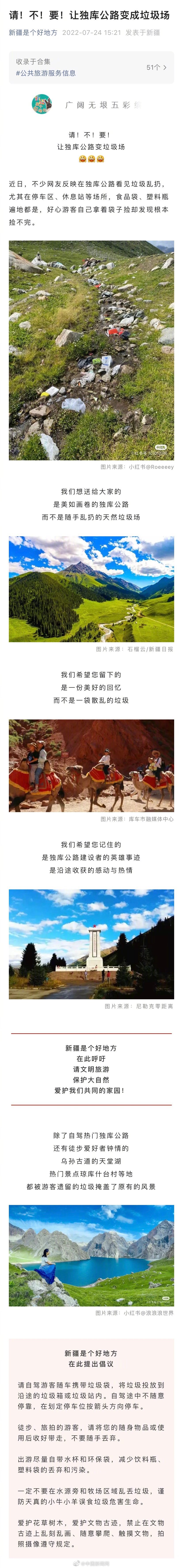24日,新疆维吾尔自治区文化和旅游厅发文称,新疆是个好地方,在此提出倡议: