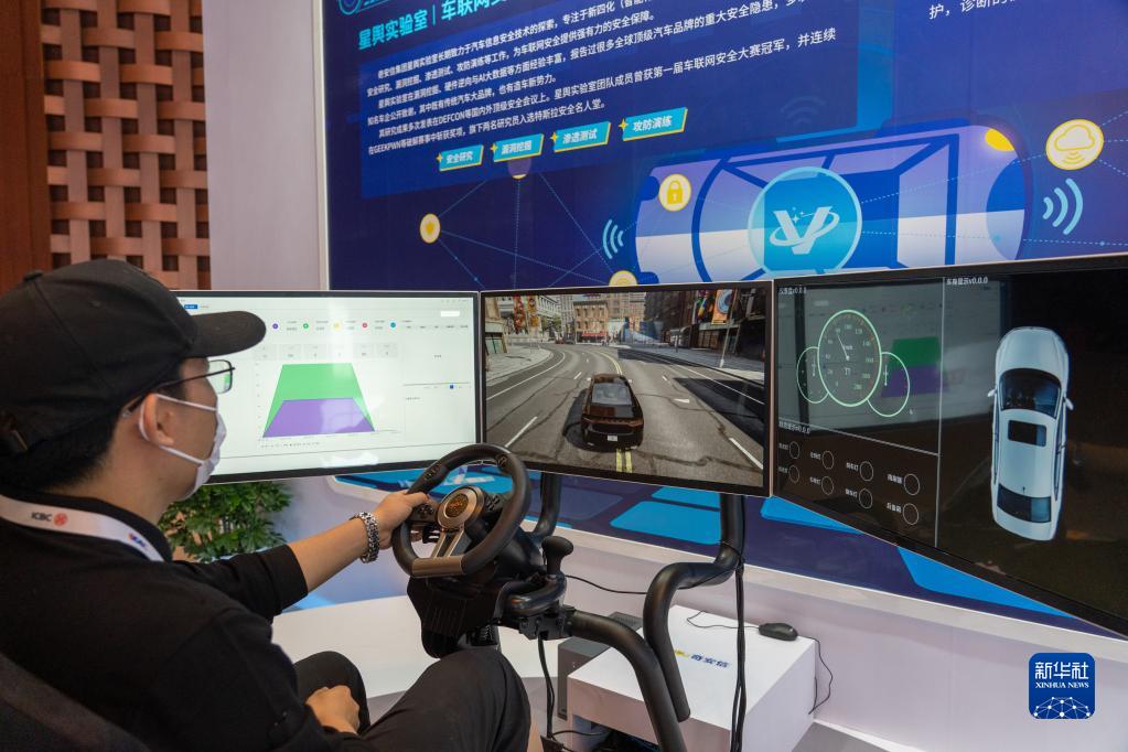 7月28日,在2022全球数字经济大会精品主题展上,一名工作人员进行汽车仿真平台漏洞攻防演示。新华社记者 陈钟昊 摄