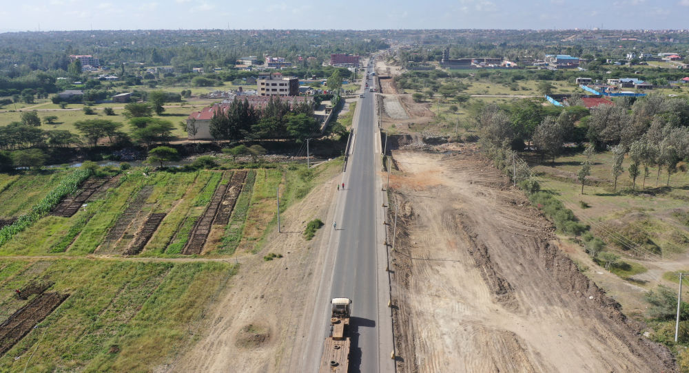 ↑这是2022年1月30日拍摄的刚开工建设的肯尼亚新内罗毕东环城路(无人机照片)。新华社发(王恒摄)