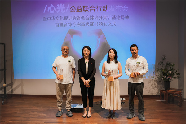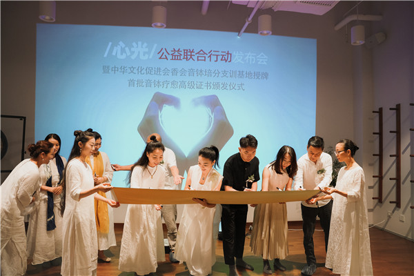 据悉,会议宣布三家机构成为我国最大的文化组织——中华文化促进会香文化委员会认证的疗愈师培训基地,这三家机构是从全国30余家闻讯报名的机构当中,经历了漫长的筛选、审核,最终确定下来的首批入选机构,也是心光联合行动的落地执行机构。同时,还为40位疗愈师颁发首批音钵疗愈高级证书,这意味着这些疗愈人才获得专业的认可。