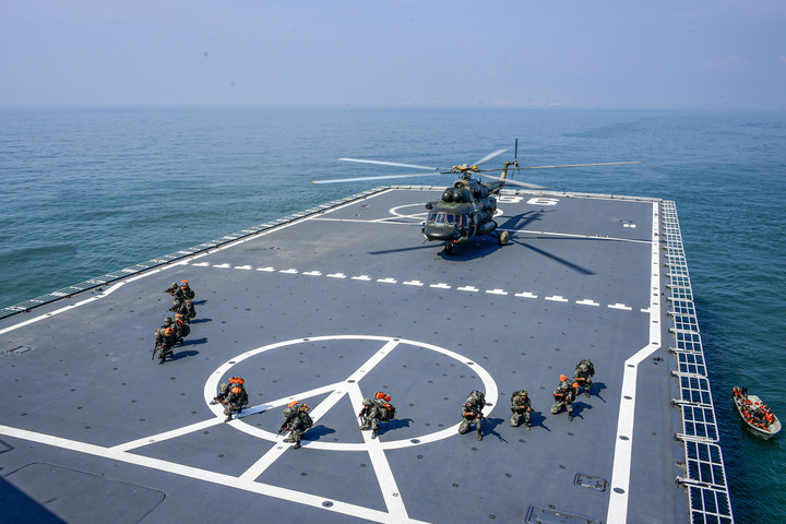 陆军第73集团军某陆航旅组织舰机协同训练(2020年7月16日摄)。 新华社发(李士龙 摄)