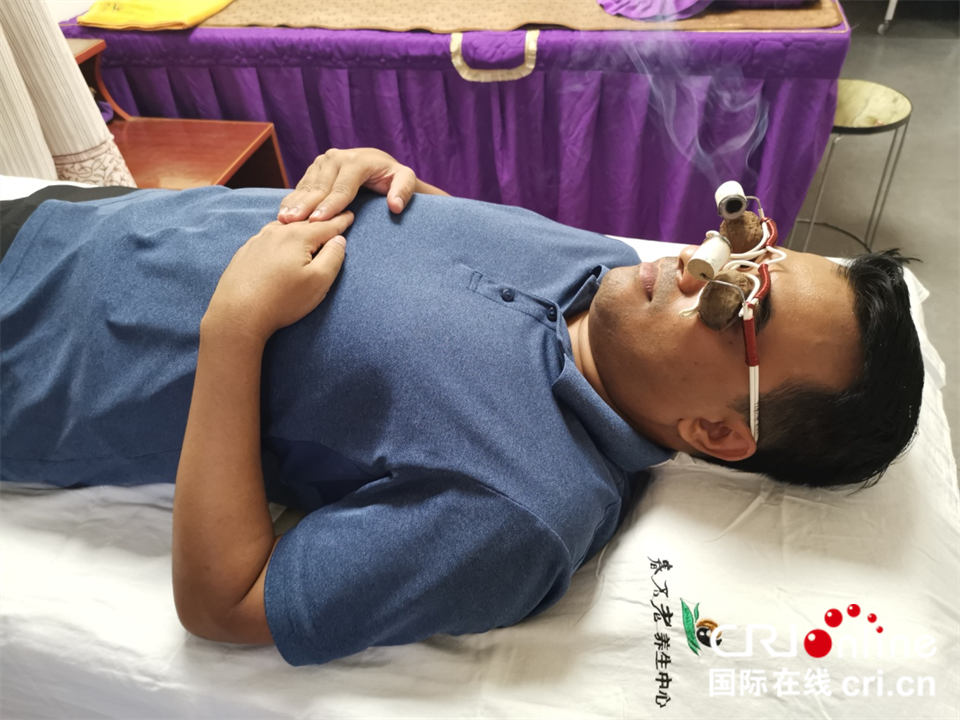 中央广播电视总台孟加拉语“中国孟”工作室主播多西德体验中国传统中医绝活“核桃灸” 摄影 张永良