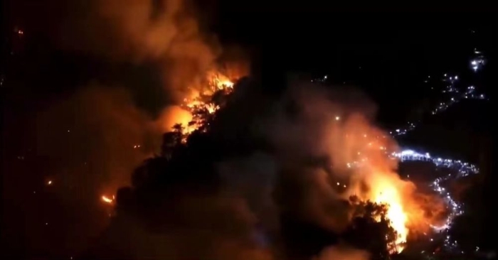 图说:8月25日晚,重庆市北碚区缙云山的山火现场。受访者供图