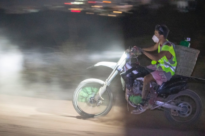 从21日开始,这些摩托车骑手们,在山火现场接力运输,让本来没有灯的地方,有了灯;让本来没有路的地方,有了路。