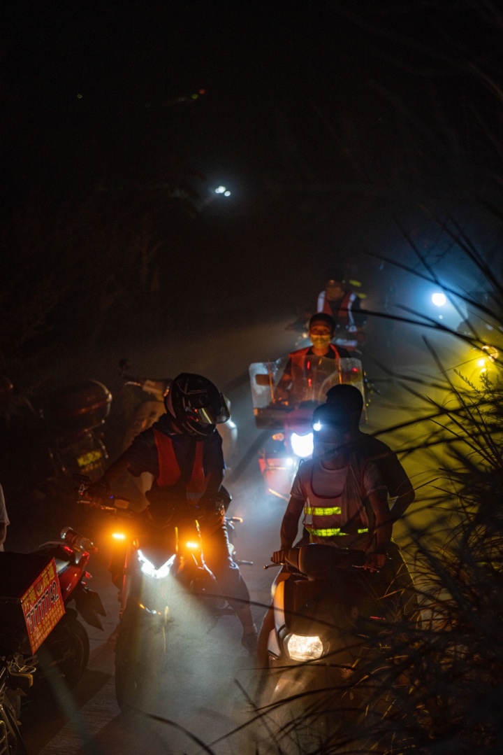 他们没想到,在他们上山接人下山的同时,越来越多新来的志愿者此时跟在他们身后,一起上山。这些摩托车骑手们,在这个夜晚,犹如一条发光的“小龙”,快速地“游”进了大山深处。