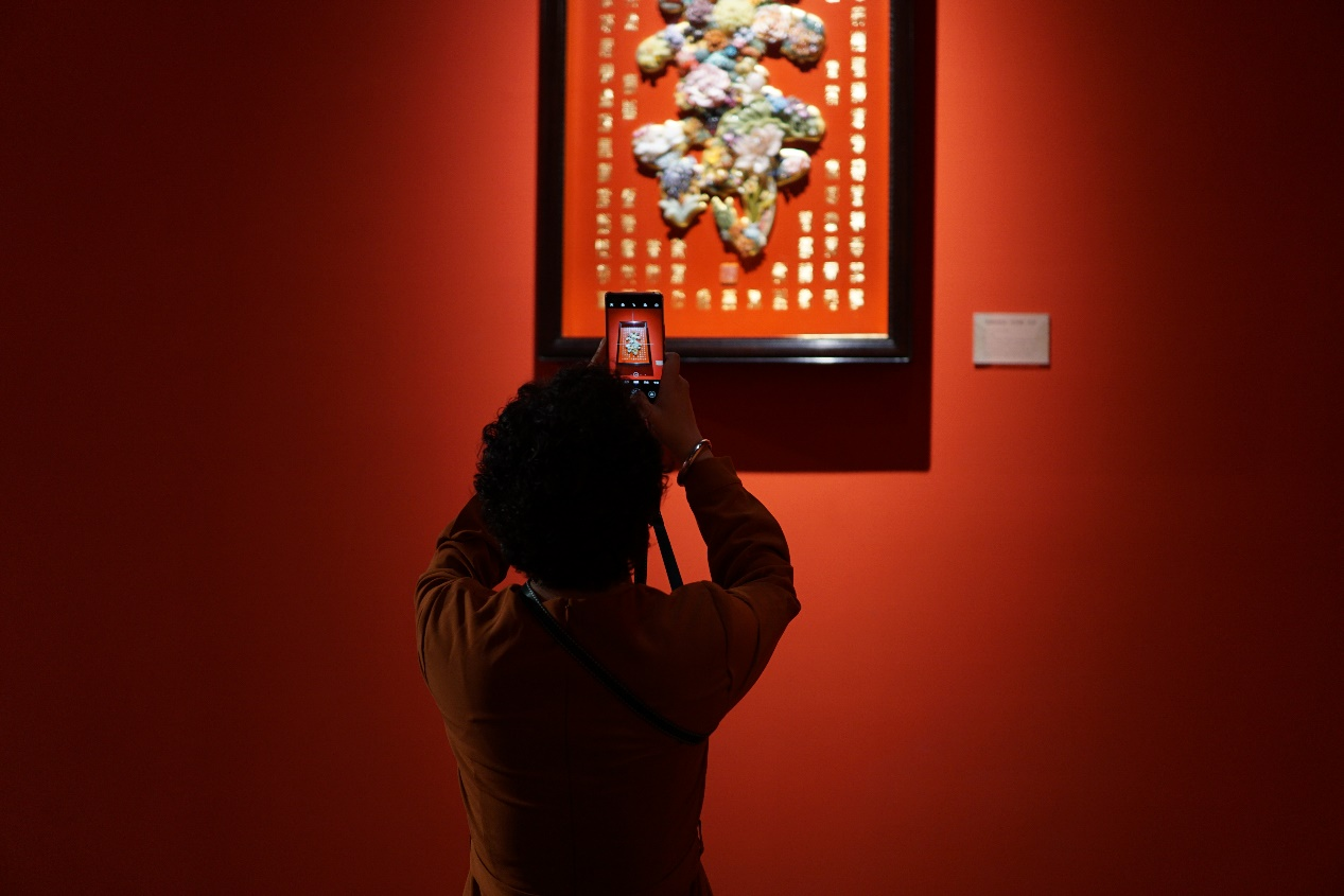 来宾用手机拍摄金漆镶嵌艺术作品。中国网发 郝玥 摄