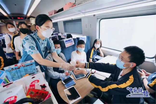 二是精准实施“一日一图”,充分满足旅客出行需求。针对暑期学生流、探亲流、旅游流叠加、部分地区客流相对集中的情况,加强12306售票数据分析,科学安排旅客列车开行,实施“一日一图”,精准匹配运力和需求,全国铁路日均开行旅客列车8367列;在部分热门方向和区间,采取动车组重联运行、普速客车加挂车辆、启用热备车组等措施,及时增加运力投放;充分用好郑渝高铁襄阳至万州段、济郑高铁濮阳至郑州段、和若铁路等新线资源,积极推动“高铁+旅游”融合发展,推动铁路和景区客流同步增长,为旅游经济复苏注入了新动力;针对部分地区出现严重汛情,果断采取调整径路、降速运行、减开列车等主动避险措施,确保铁路运输安全万无一失。