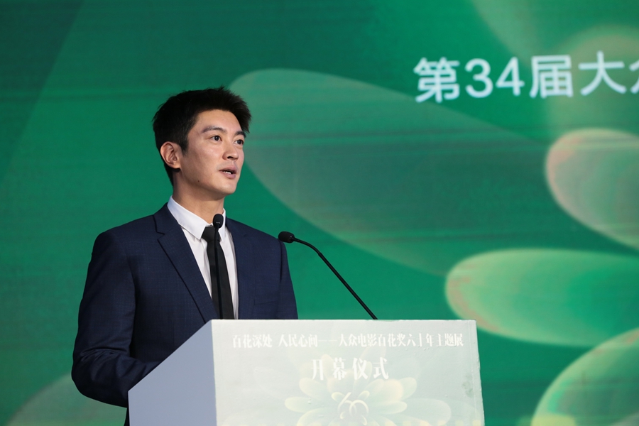 杜江在开幕仪式上发言。他表示,大众电影百花奖创办60年来,推出了一大批优秀的获奖电影人,他们每一个都是榜样式的存在