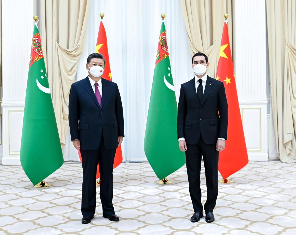 当地时间9月15日上午,国家主席习近平在撒马尔罕国宾馆会见土库曼斯坦总统谢尔达尔·别尔德穆哈梅多夫。新华社记者翟健岚 摄