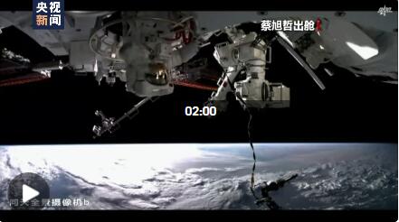 航天员蔡旭哲安装舱外载荷回路扩展泵组。泵组安装步骤:一勾二锁三通四连。