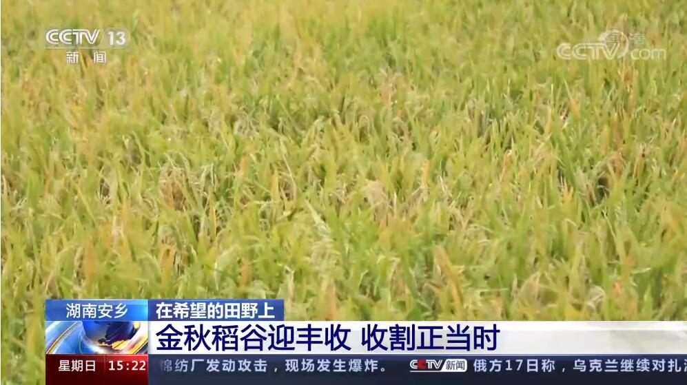 央视网消息:这几天,湖南安乡县的单季稻田金色稻浪随风起伏,农机手们驾驶着大型收割机在稻浪中穿梭,将黄澄澄的稻谷尽收其中;而另一边,已经收割好的稻谷正在晒谷场进行晾晒,两三天后就可以装袋入仓。田间地头、村里村外,一派丰收的忙碌景象。