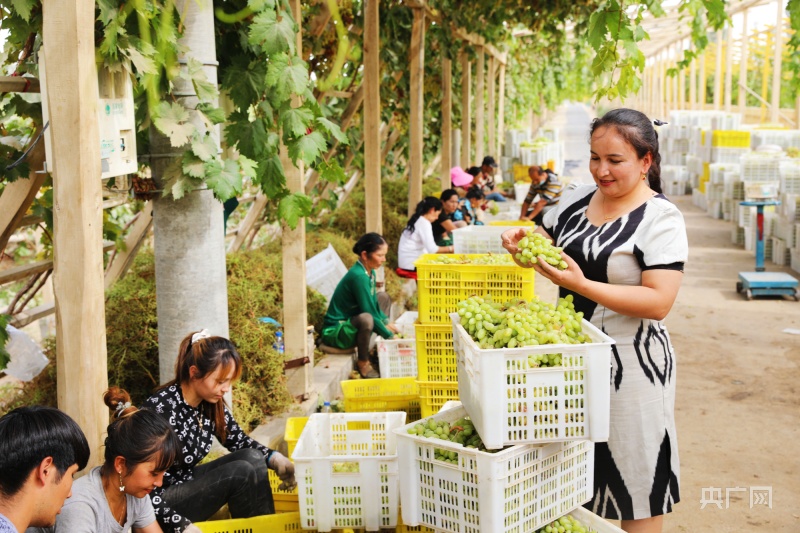 央广网墨玉9月18日消息(记者 罗成 通讯员 惠丰蕾)新疆和田地区墨玉县喀瓦克乡紧邻塔克拉玛干沙漠边缘,独特的地理位置和自然气候,促使该乡葡萄产业迅猛发展。