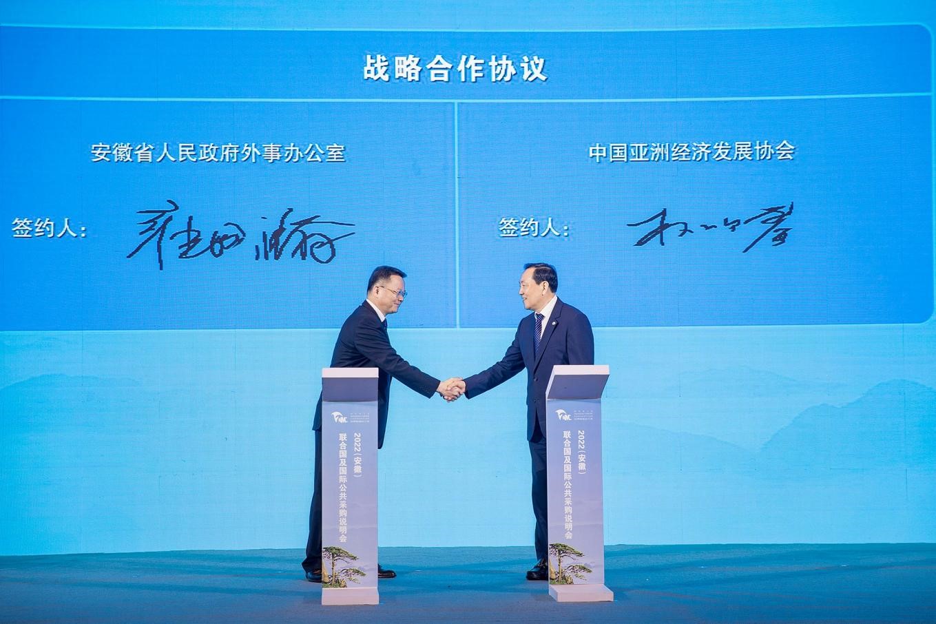 安徽省人民政府外事办公室与中国亚洲经济发展协会签署战略合作协议。
