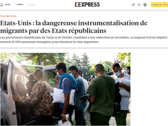 法国《费加罗报》9月16日发表报道称,由于临近中期选举,共和党人猛烈抨击拜登导致了美国与墨西哥的边境危机,并希望将媒体的目光吸引到移民问题上。