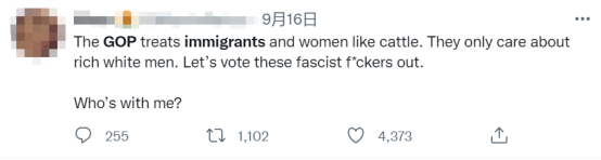 共和党人对待移民和妇女就像对待牲口一样。他们只关心有钱的白种男人。让我们投票赶走这些法西斯恶棍吧。