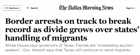 报道指出,得克萨斯州州长阿伯特今年已经使用国家出资的大巴运走了11,000多名移民。阿伯特指责拜登政府没有采取任何有效行动来“确保边境安全”,从而使得持续增多的移民“危及”当地社区(编者注:得克萨斯州与墨西哥接壤)。阿伯特称,得州还将继续向北运送移民,直到拜登总统和哈里斯副总统“站出来做好自己的工作”。对此,拜登回应道,共和党人正在玩政治游戏,把移民当作“棋子”,他们的做法大错特错。