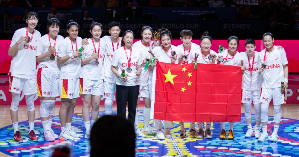 △10月1日,中国队在2022女篮世界杯决赛颁奖仪式上。 五湖四海同升一面旗