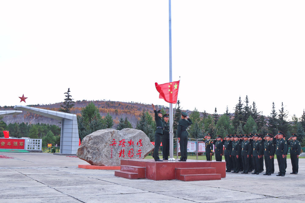 △10月1日,在祖国最北端的漠河市北极村,驻守在这里的北部战区陆军某边防旅北极哨所官兵举行升国旗仪式。在祖国最南端城市三沙