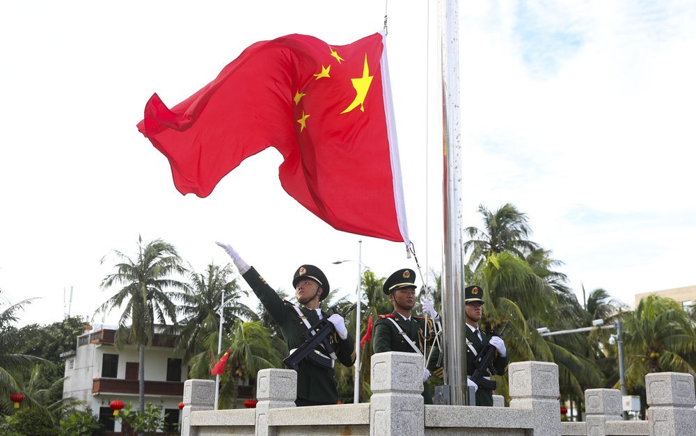 △10月1日,海南省三沙市在永兴岛举行升国旗仪式。在新疆,在西藏