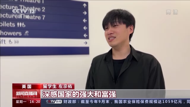 留学生 左宗佑:作为海外留学生,深感国家的强大和富强,也会在未来继续践行心中理想,敢于做梦,敢于追梦,敢于圆梦,勇于担当责任,为实现中华民族的伟大复兴贡献出自己的一份力量。