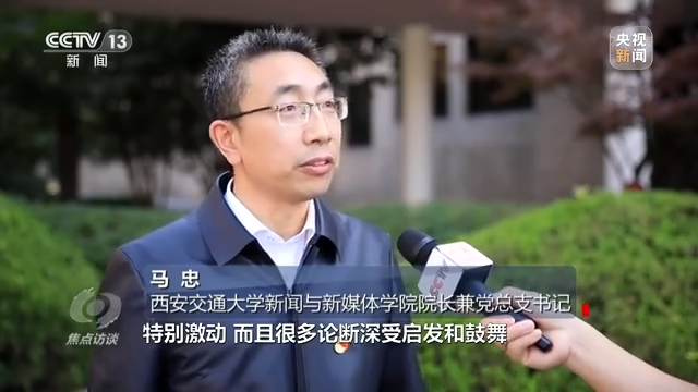 西安交通大学新闻与新媒体学院院长兼党总支书记马忠说:“特别激动,而且很多论断深受启发和鼓舞,报告中跟我们工作和教育相关的论断非常多,结合我自身学院发展就是加强全媒体传播体系建设,我们希望通过创新的精神,把我们学院的学科发展,激发出新的火花和新的动力。”