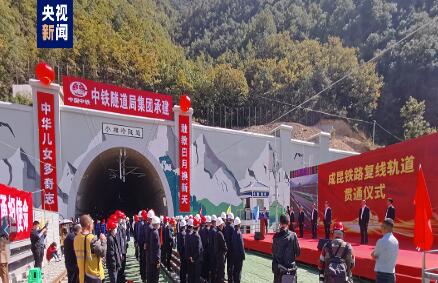 28日12时16分,四川凉山州喜德县一越西县交界处的成昆铁路扩能工程(简称成昆铁路复线)小相岭隧道施工现场,最后一对500米长钢轨稳稳落下,标志着成昆铁路复线全线铺轨顺利完成。