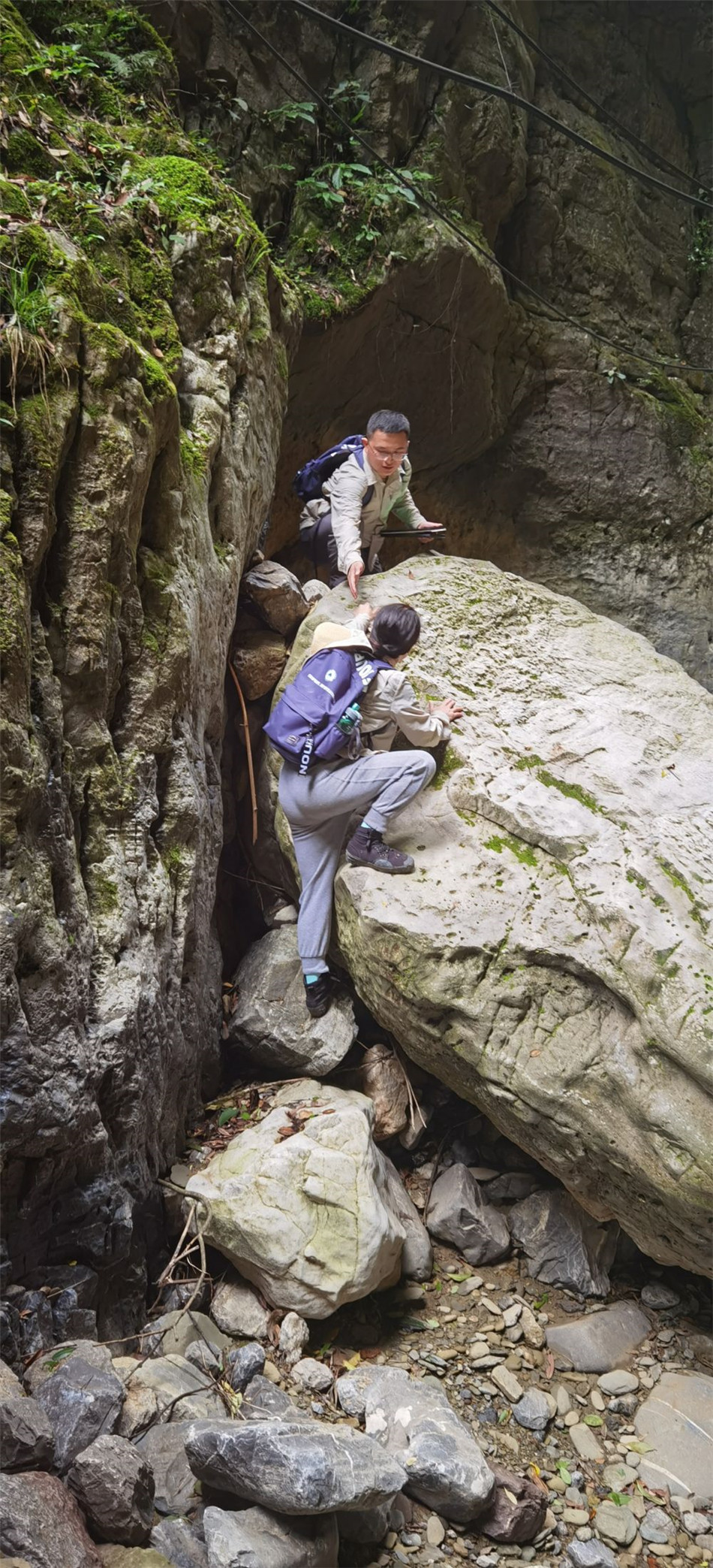 杨泉指着远处的山崖眺望,“那里有一颗目前发现的最大的野生崖柏”。黄吉兰又说:“那边崖柏更多,都在悬崖上。”