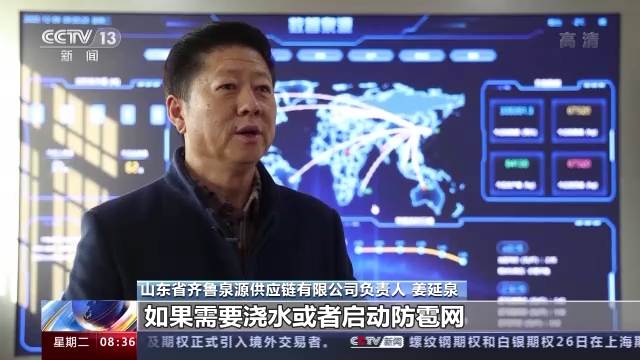 山东省齐鲁泉源供应链有限公司负责人 姜延泉:如果需要浇水或者启动防雹网,只要一按电钮就可以了。在种植管理、质量追溯、产品营销,全产业链我们也都实现了数字化管理。