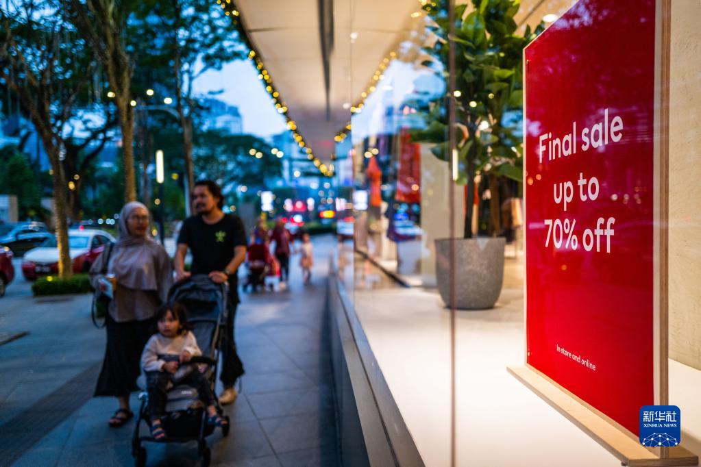 12月26日,人们从马来西亚吉隆坡一家商店的打折信息旁走过。新华社记者 朱炜 摄