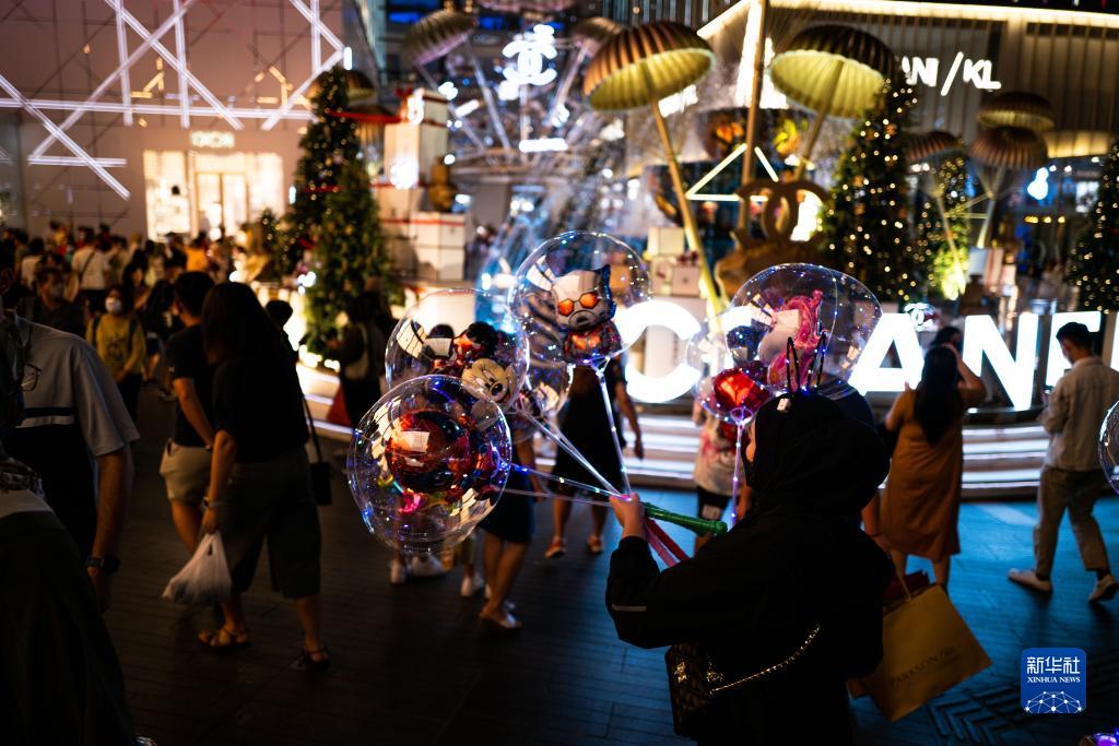 12月26日,一名商贩在马来西亚吉隆坡的商场外卖气球。新华社记者 朱炜 摄