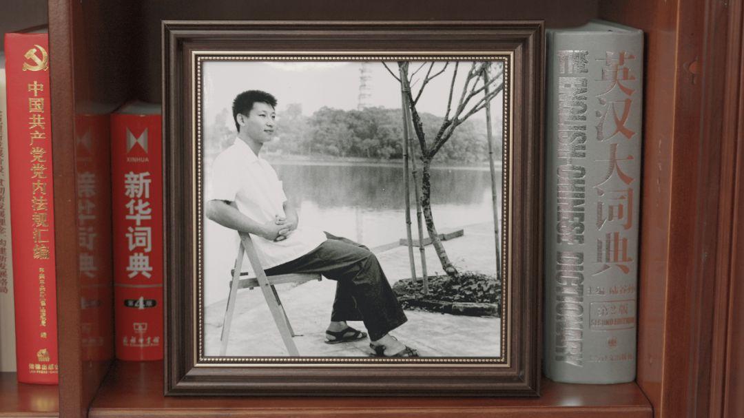 书架上,还增加了两张习近平总书记年轻时的照片。