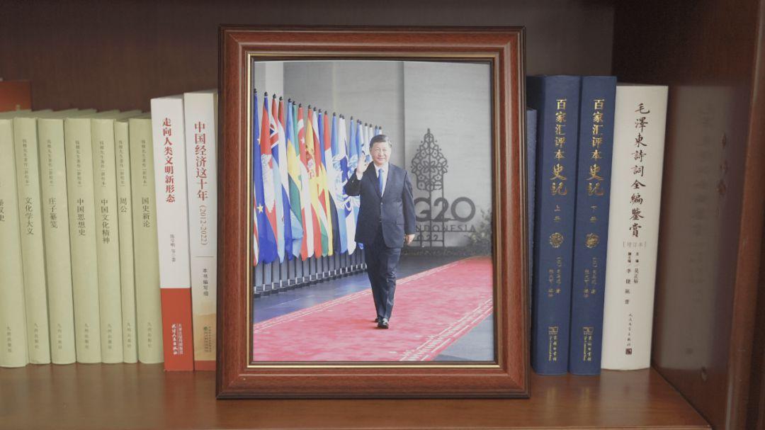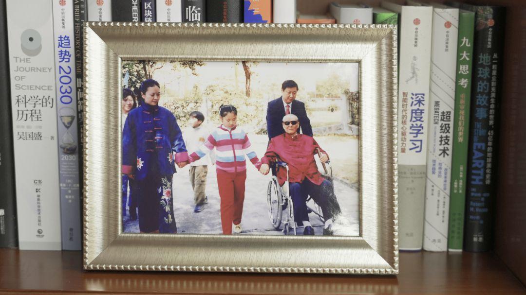 还有一张特别的照片,从习近平主席发表二〇一九年新年贺词时起,就一直摆放在书架上。