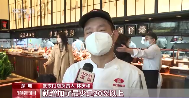 餐饮门店负责人 林庆和:比以往的生意客流增加了最少是20%以上。