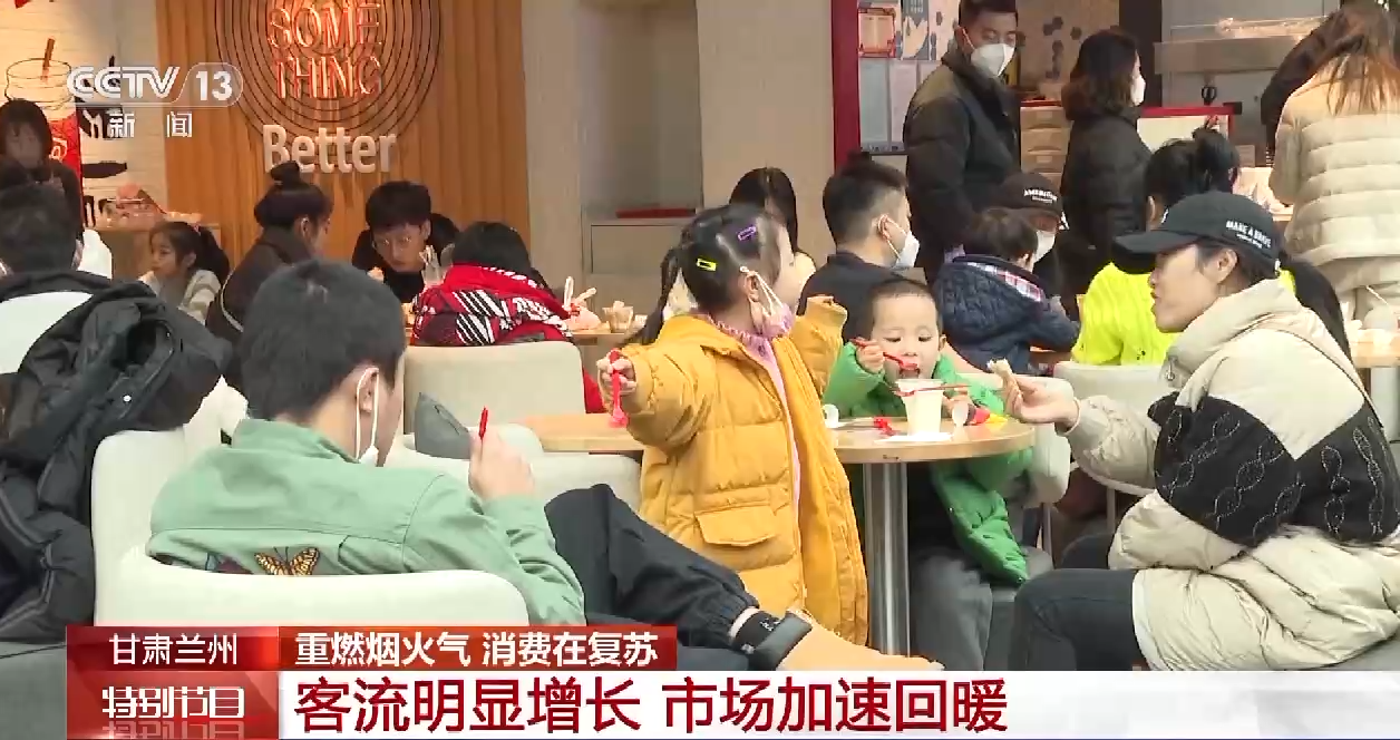 在兰州中心的餐饮区,虽然已经过了用餐高峰期,依然有不少市民排队等待叫号,部分餐饮店负责人介绍,一个星期前,客流有了明显的增长,这两三天甚至出现顾客爆满的情景,这让大小商家的脸上有了笑容。