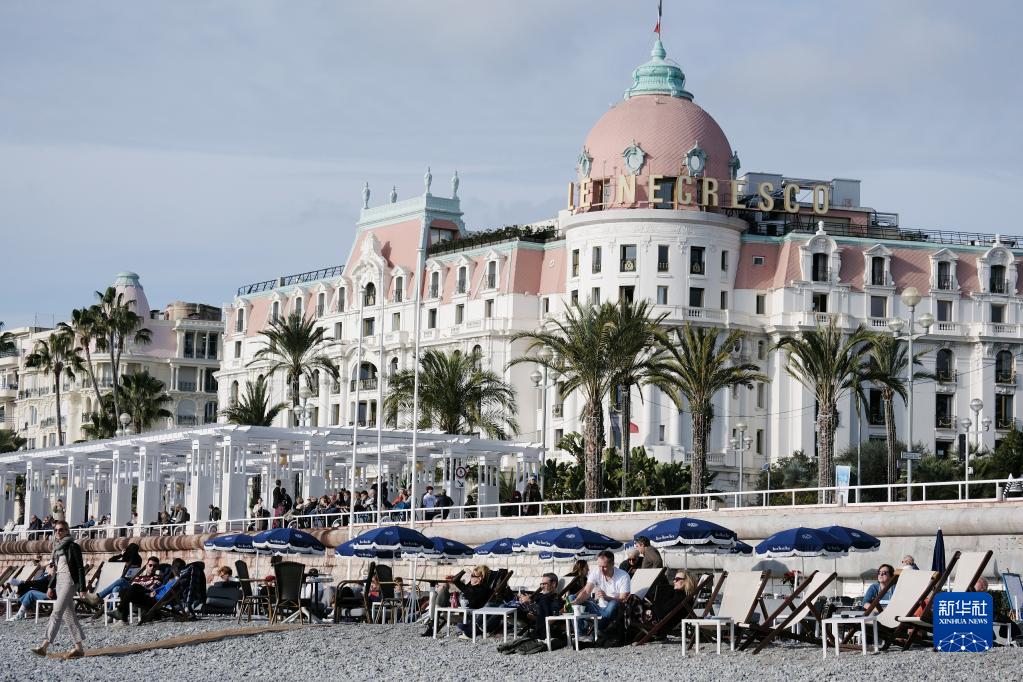1月3日,人们在法国南部城市尼斯的海边休闲。