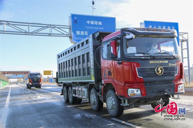 2022年11月17日,一辆工程车辆通过位于中国哈萨克斯坦边境的新疆塔城地区巴克图口岸出口到国外。 新华社发 王婷 摄