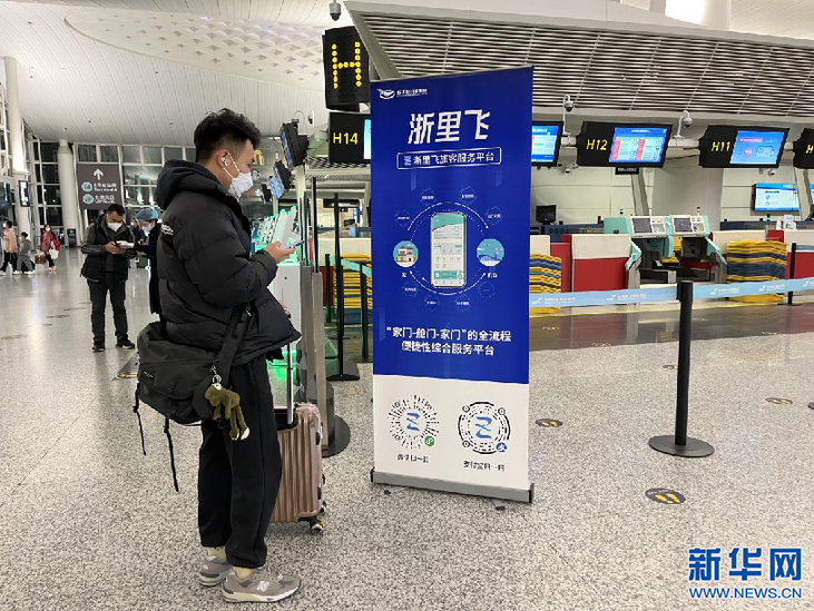 旅客正在扫描浙江省机场集团推出的“浙里飞”旅客服务平台二维码。新华网发